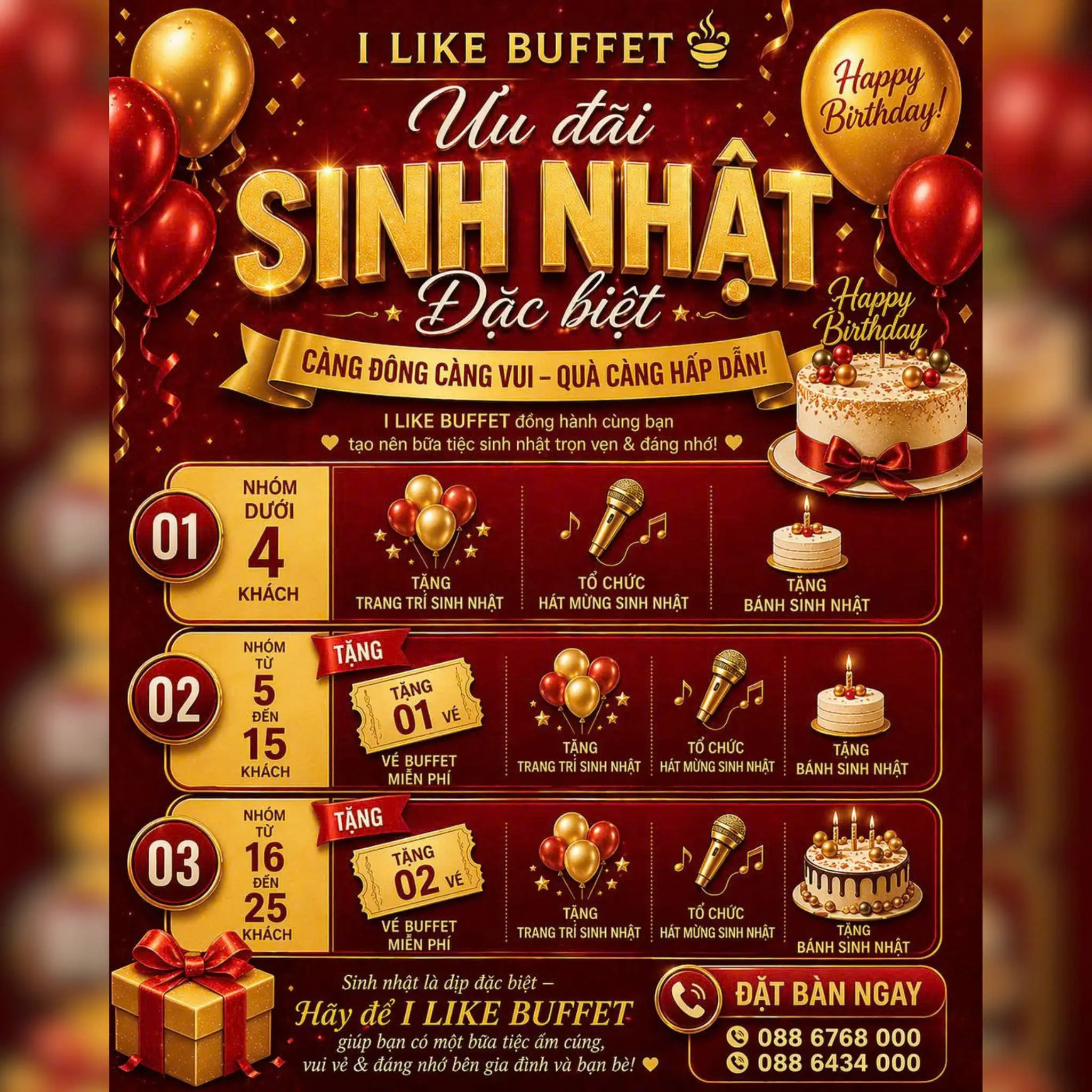 Gọi ngay 088 6768 000 để đặt bàn hoặc truy cập website https://ilikebuffet.com để biết thêm chi tiết!